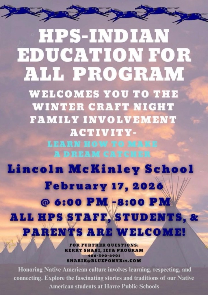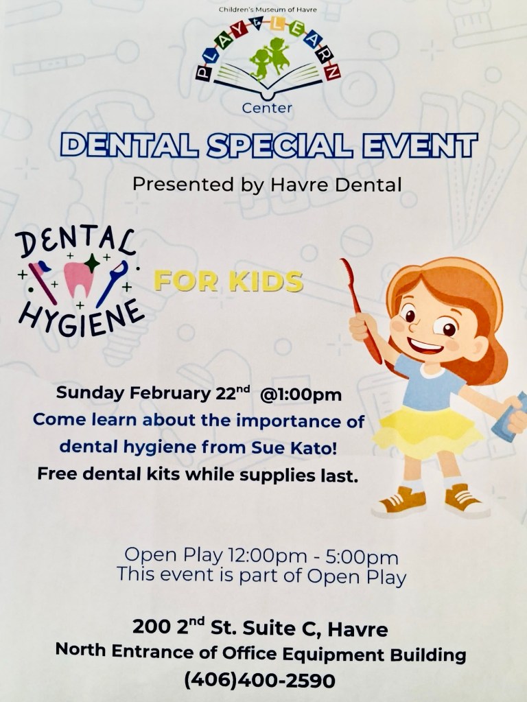 Gather round.. it’s time for Havre’s weekly event roundup! This week is loaded with learning opportunities, from Havre Public Schools’ Indian Education for All Program and the Far Out & Waiting Workshop from the City of Havre Fire Department to a kids dental hygiene event at the Play to Learn Center. Meet this month’s PAWS of Chinook Mutt of the Month at Triple Dog Brewing Co. and take in live performances at a couple local watering holes. Plenty to do this week, have a great one!