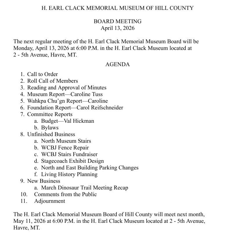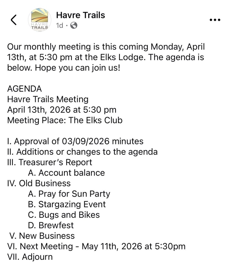 🙋If you’re looking to get more involved in our community, check out board meetings for Havre Trails, the H. Earl Clack Museum, Havre Public Schools, and Hill County Parks, plus a Democratic Candidate Forum on Sunday.